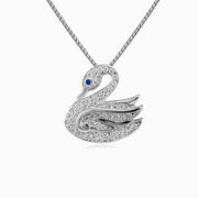 Pendentif de cygne aux yeux bleus en argent sterling, décoré de cristaux et de quartz bleu.
