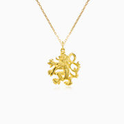 Pendentif de lion tchèque en or jaune 14 carats pour collier avec une finition très polie.