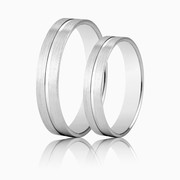 Обручальное кольцо из белого золота 585 пробы с матовой поверхностью и блестящей линией.