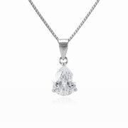Кулон изготовлен из серебра 925 пробы гальваническим покрытием родием и украшен белым кристаллом в форме капли.