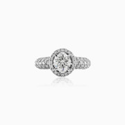 Это восхитительное помолвочное кольцо из белого золота 750 пробы - является сердцем коллекции Monte Cristo. Центральный сверкающий бриллиант весом 0,91ct окружен ореолом из круглых бриллиантов и усыпан бриллиантами по сторонам, посаженными в паве, общей массой 0,61ct.