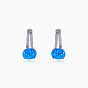 Серьги изготовлены из родированного серебра 925 пробы с голубым опалом овальной формы, который украшают две симметричные линии белых кристаллов бриллиантовой огранки.