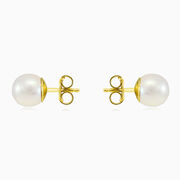 Золотые серьги-гвоздики с белым круглым жемчугом из желтого золота 585 пробы.
